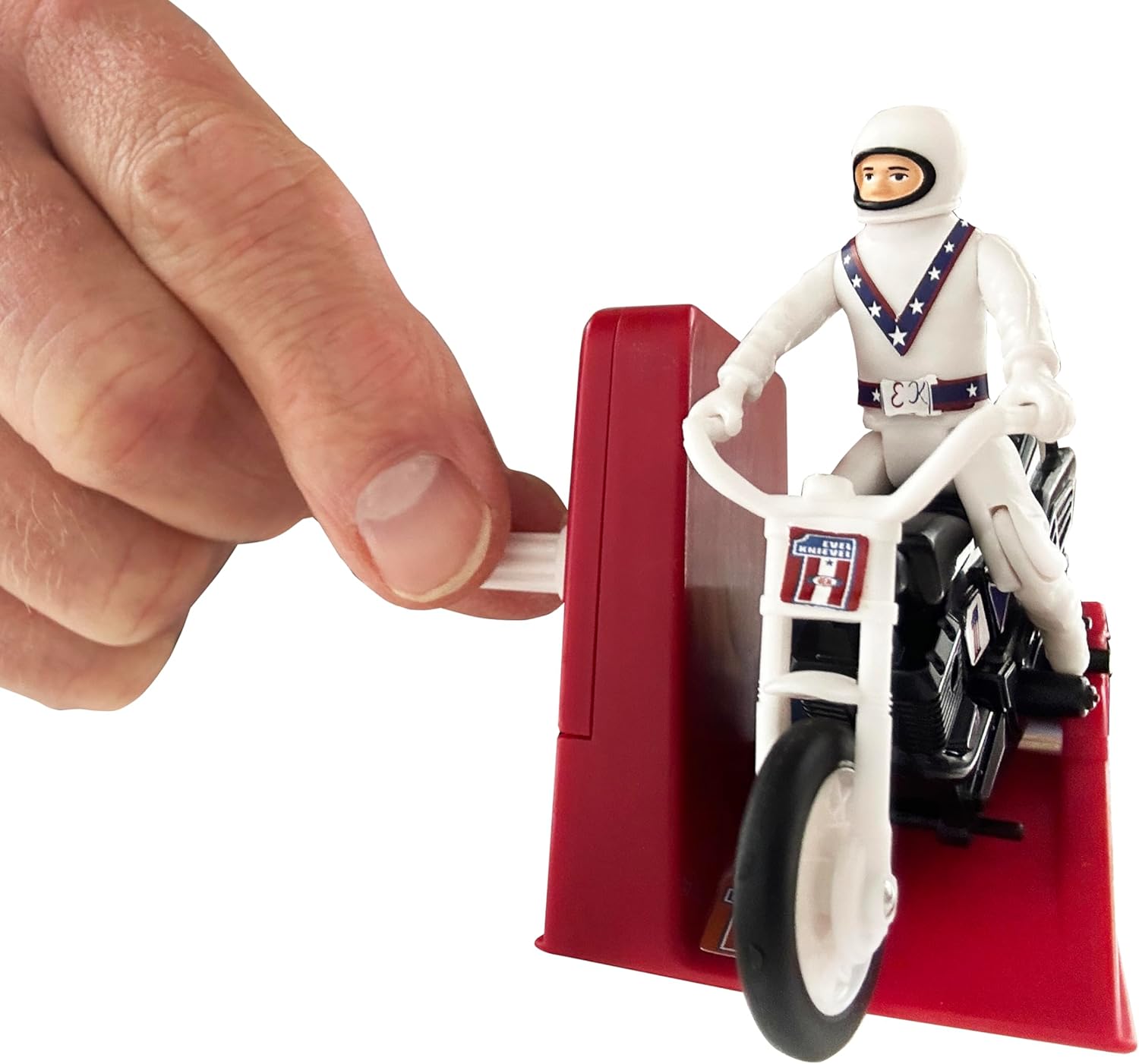 Get ready to rev, launch, and defy gravity with the World’s Smallest Evel Knievel Stunt Cycle! This mini version of the legendary stunt bike brings all the heart-pounding action of the original. Wind it up, release, and watch as Evel Knievel takes off on daring jumps and high-flying stunts—just like the fearless showman himself! Featuring a detailed rider, classic stunt bike, and working launcher, this pocket-sized powerhouse is perfect for collectors, thrill-seekers, and anyone who dreams of going big.