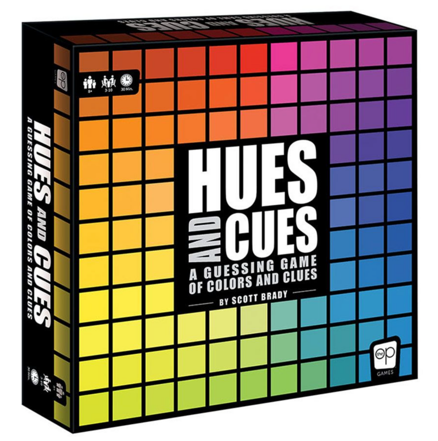 How well can you associate colors with words? To play Hues and Cues, draw a card and choose one of the colors, keeping it to yourself. Using only one and two-word clues, try to get your friends to guess which one it is! Choices are narrowed down as you go around the table. The closer the guesses are to the target, the more points you earn. The player with the highest score wins! Ages 8 and up. 3-10 players. 30 minutes to play.