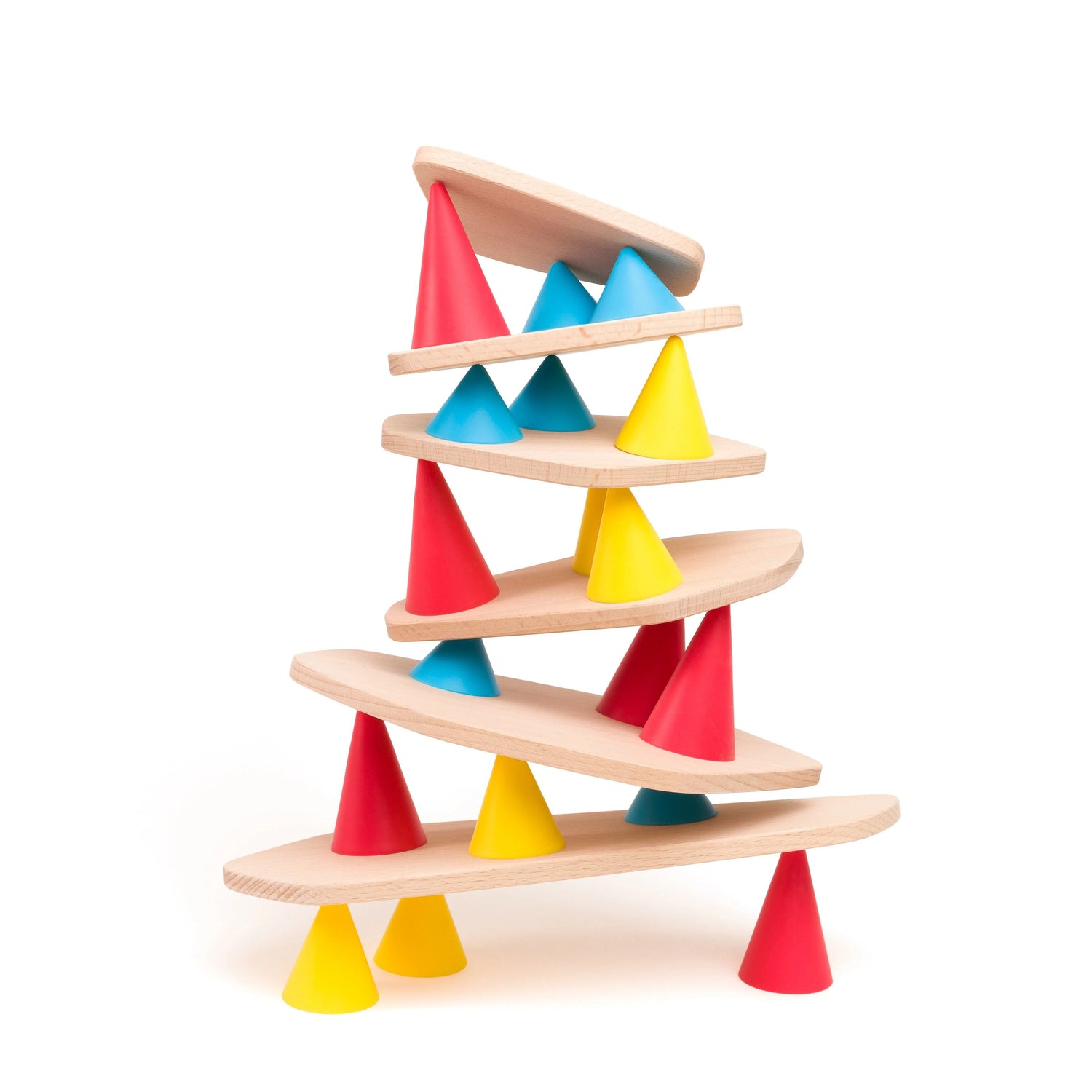 The cones, made of silicone in three different sizes and colors, grip the wooden boards: and challenge a whole new dynamic of play.