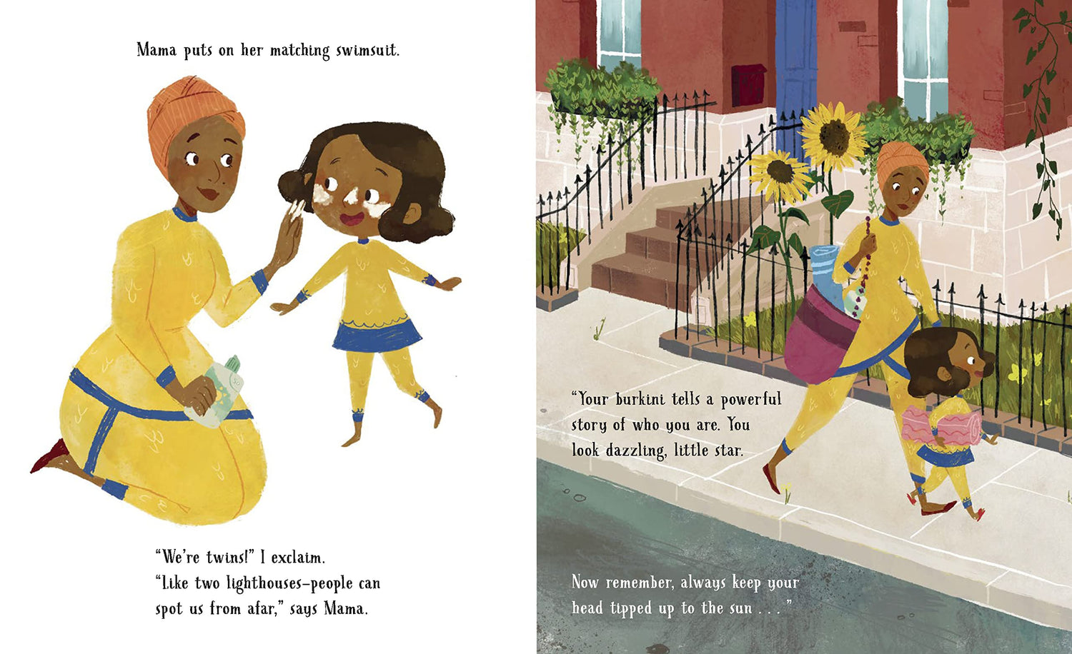 Summer is here and Heba is so excited to wear her new, yellow burkini to the community pool for the first time! She can't wait to look like the other mermaid girls in her family and sparkle like the sun.