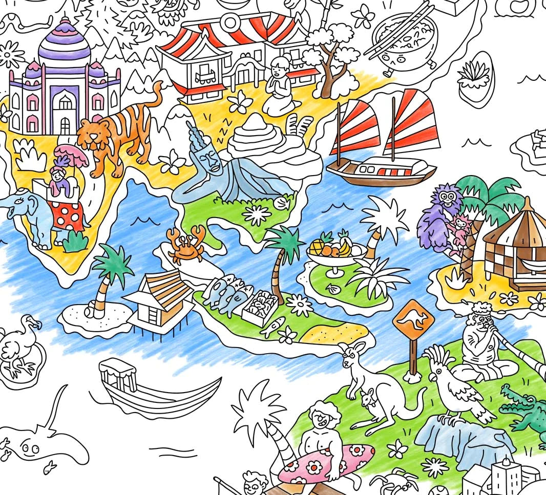 Color the world with this giant poster! Featuring adorable illustrations on a world map, this giant poster is perfect for coloring with friends, family, or even alone. After hours of creativity and imagination, this poster is easy to frame and admire (frame not included). Comes folded in a thin cardboard box, includes one poster. Measures 27.6" x 39.4" when unfolded. For ages 3 and up