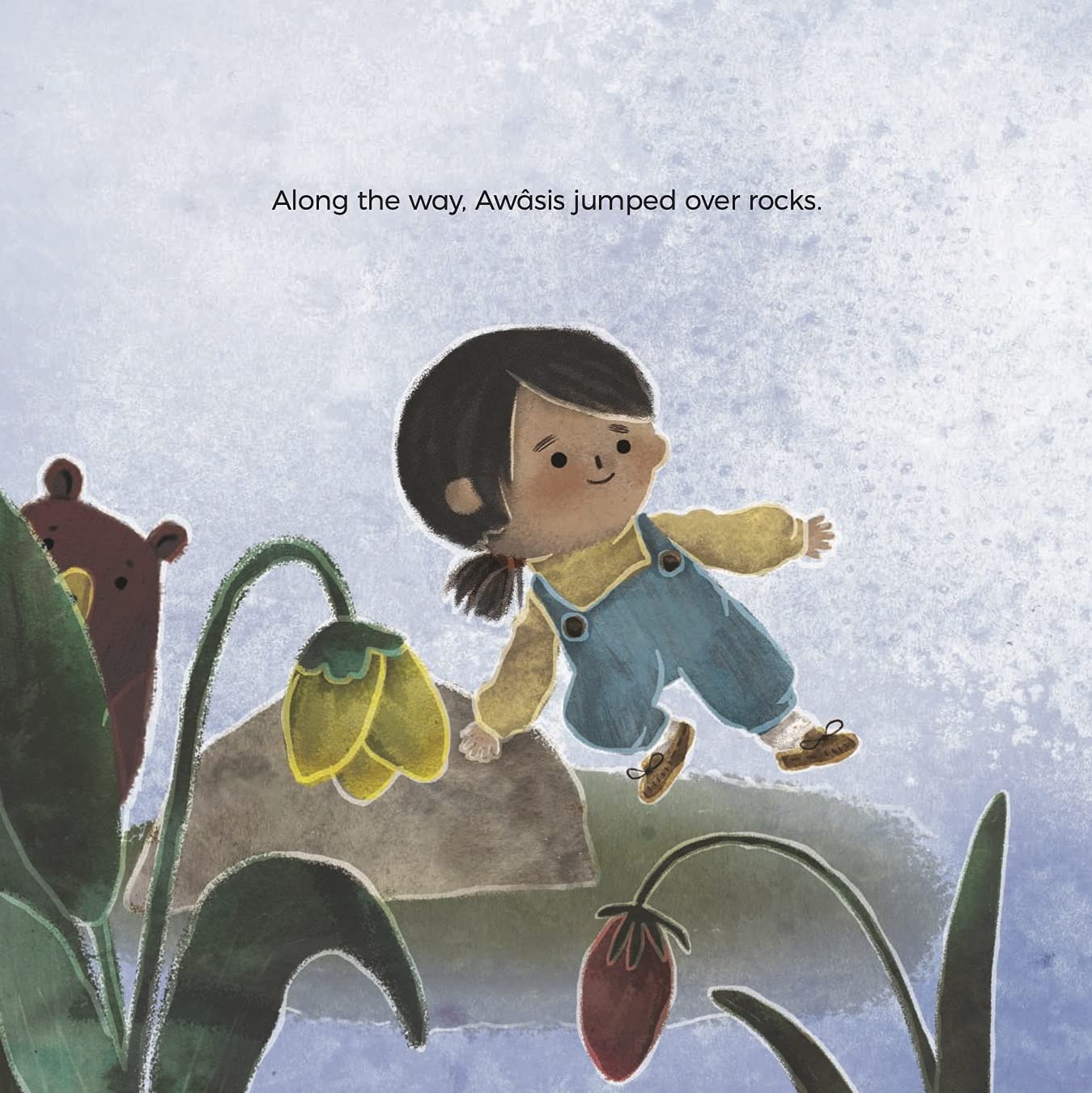 During an unfortunate mishap, young Awâsis loses Kôhkum’s freshly baked world-famous bannock. Not knowing what to do, Awâsis seeks out a variety of other-than-human relatives willing to help. What adventures are in store for Awâsis?