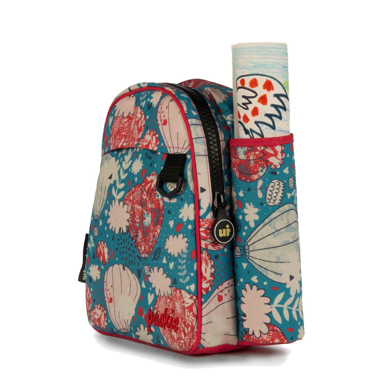 Rugged outer laminated fabric is waterproof and easily wipes clean. Don’t overlook the most important feature which is a patented art tube. Designed to roll and transport your child's masterpieces they may have drawn at preschool that day.