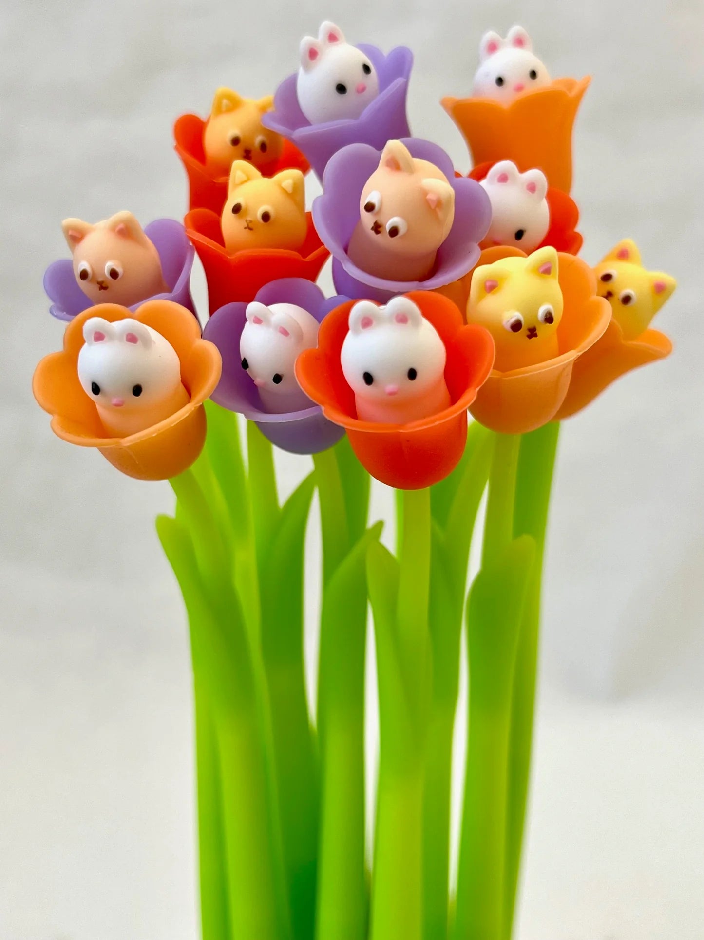 This adorable pen has a little critter in the bluebell- either a cat or a bunny! Comes in assorted styles, all adorable. Each sold separately. Smooth fine tip black gel ink.