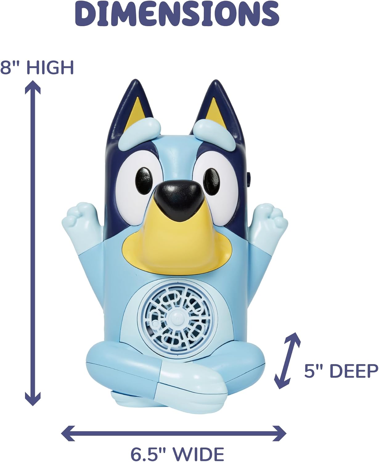Sing along to with the BLUEY No-Spill Musical Bubble Machine and enjoy continuous bubble fun. The Bluey No-Spill Musical Bubble Machine is 2-in-1 play— plays music and blows continuous streams of bubbles. This machine features our unique no-spill design to prevent accidental bubble spills for less mess and more smiles!