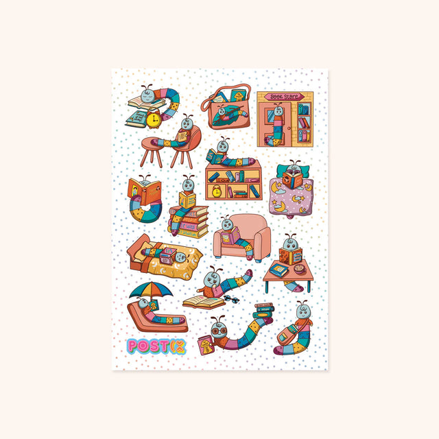 This delightful sheet features 15 stickers of a colorful bookworm who adores reading from morning to night. Their fave book of course is "To Kill a Mockingbird".