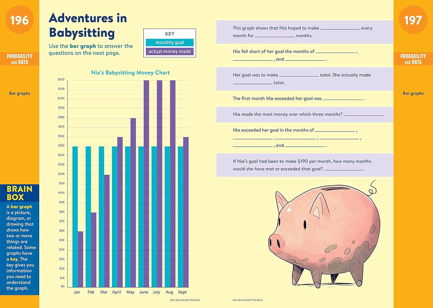 It’s fun to be smart! Loved by kids, teacher approved, and parent trusted, Brain Quest Grade 5 Workbook reviews and reinforces what kids are learning in the classroom in an instantly engaging, entertaining way. Each page is jam packed with hands-on activities and games covering spelling and vocabulary, language arts, math skills and word problems, multiplication and division, fraction and decimals, social studies, and much, much more—with friendly illustrations throughout.