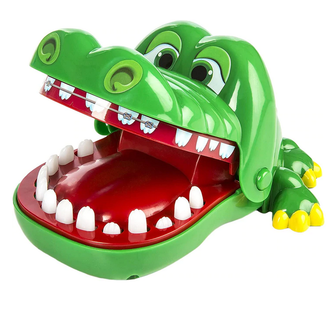 Poor old croc has a tooth that's bothering him, pretend to be a dentist to help him out. Press the wrong tooth and he'll surprise you! With exciting snapping jaws, this is one game that will thrill toddlers and primary schoolers alike. To Win, be the only Dentist who doesn't rile the crocodile. No Loose parts, No batteries required.
