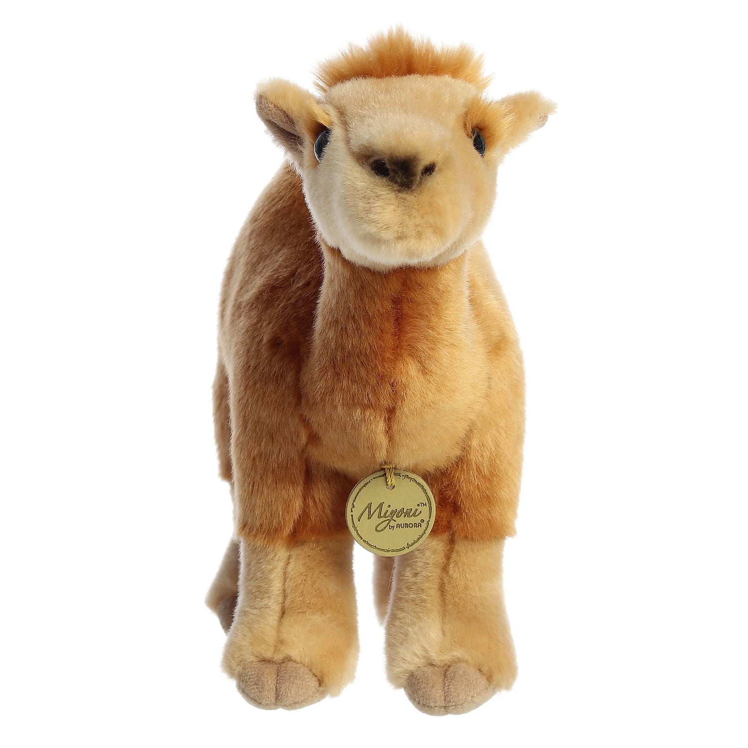 This plush dromedary camel perfectly captures the unique desert-dwelling animal! With a signature hump, long eyelashes, and soft, sandy-colored fur, this plush is an adorable interpretation of the real thing. Made with eco-friendly, high quality materials and hand-stitched with love. Measures approximately 4" x 9" x 8.5". To ensure stability and quality, this plush contains bean pellets that are suitable for all ages.