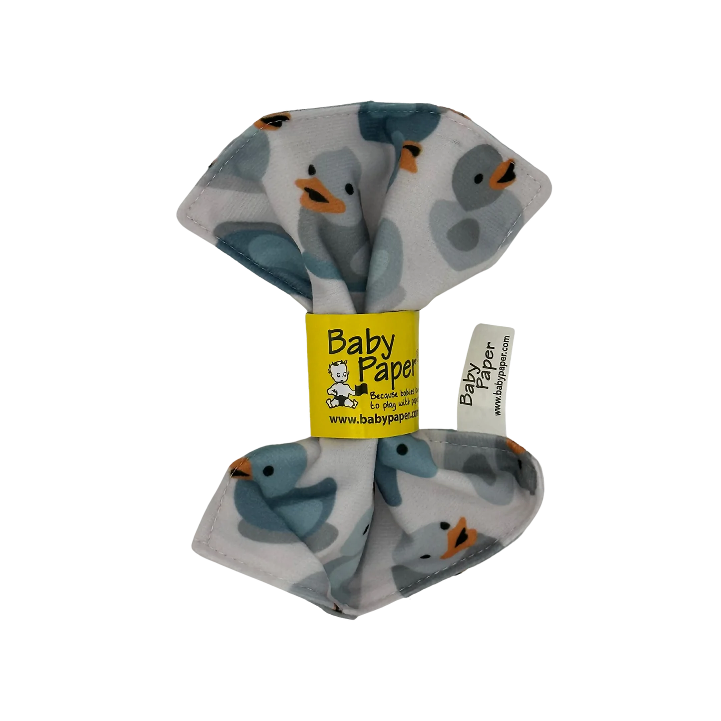 Baby Paper was created by a mom whose children were fascinated with restaurant napkins! This play inspired the crinkly paper that soothes and entertains while stimulating developmental skills and sensory exploration. Baby Paper is fully CPSIA tested, washable, portable and lovable. Because…babies love to play with paper!