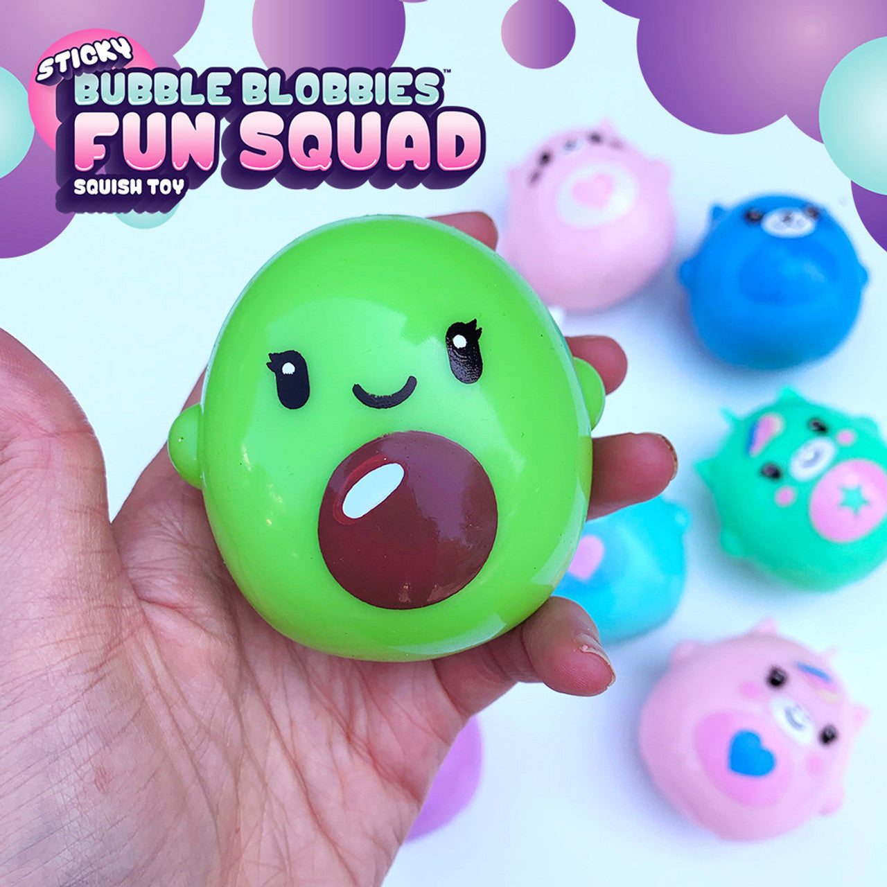 Its always playtime with the Fun Squad! Introducing the Sticky Bubble Blobbies Fun Squad Edition! Your favorite squishy toy now has new characters!