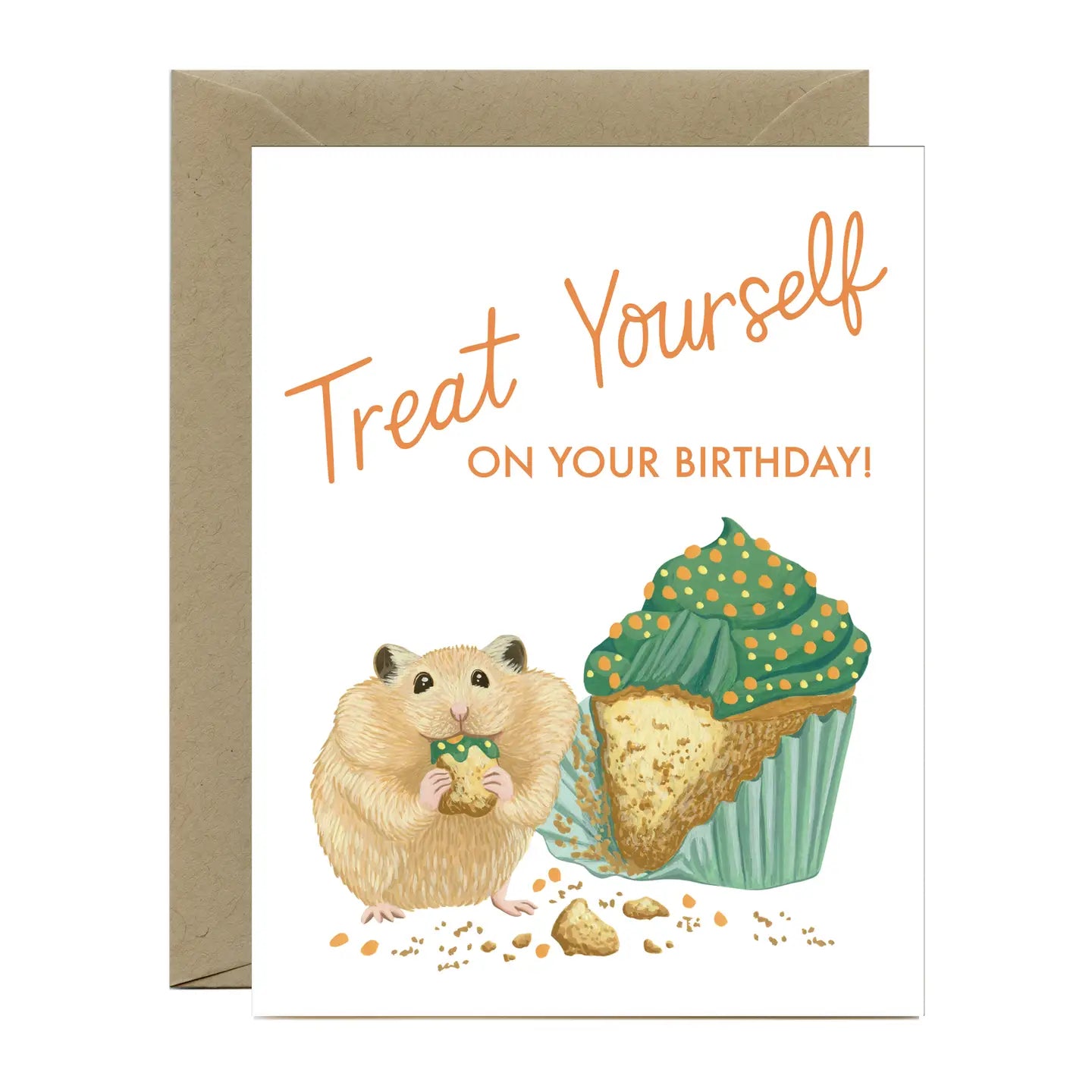 FSC-certified, recycled 110 lb. cover weight paper. Matching recycled envelope. Blank inside with full-color logo on the back. Single card & envelope packaged in a clear cello sleeve. The card is A2 size (4.25" x 5.5")