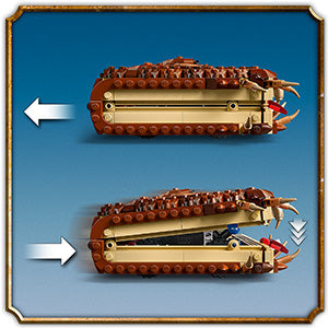 Put the magic of Hogwarts™ lessons in the hands of your young wizard, witch or Muggle™ with the LEGO® Harry Potter™ Chomping Monster Book of Monsters building toy (76449). The fun fantasy set features a detailed brick-built recreation of The Monster Book of Monsters, the sentient textbook used in the care of magical creatures. The model has hidden wheels and a pull-back function – so place it on a flat surface, pull back, let it go and watch it speed away with its mouth chomping.
