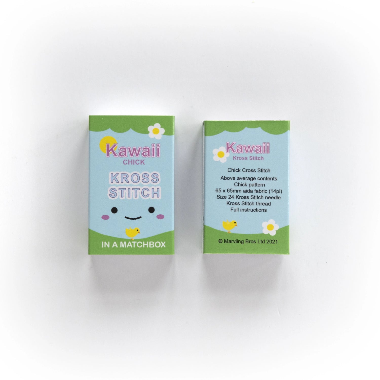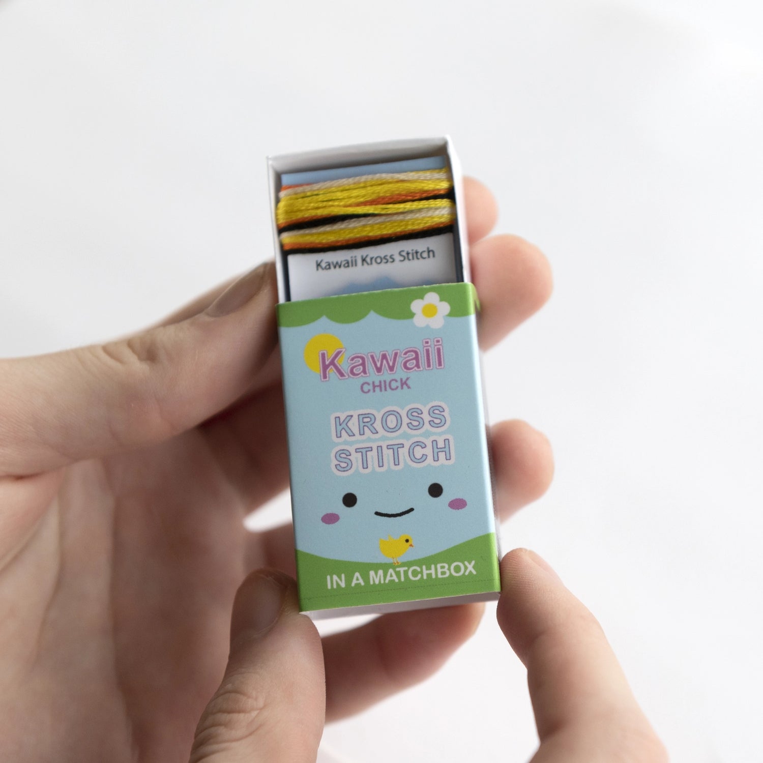 Everything you need to make this mini Kawaii style baby chick cross stitch pattern is packed neatly into this matchbox.