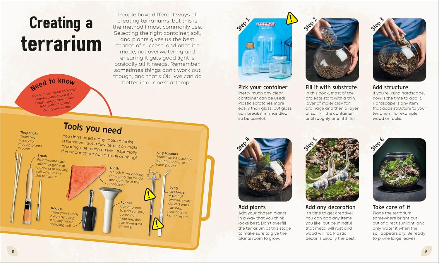 Dive into the enchanting world of miniature ecosystems with this delightful guide for young gardeners! Perfect for kids aged 7-9, this hardcover book transforms ordinary containers—from fish tanks to spice jars—into thriving magical landscapes. Discover 18 imaginative terrarium projects that spark creativity: build a prehistoric jungle with dinosaurs, craft a whimsical fairy garden, or design an otherworldly alien realm. Author Ben Newell walks you through every step, from selecting the perfect container to nurturing your plants and understanding the science that keeps your miniature world flourishing. Learn fascinating facts about soil creatures and the water cycle while creating gardens that'll have your shelves bursting with life and wonder.