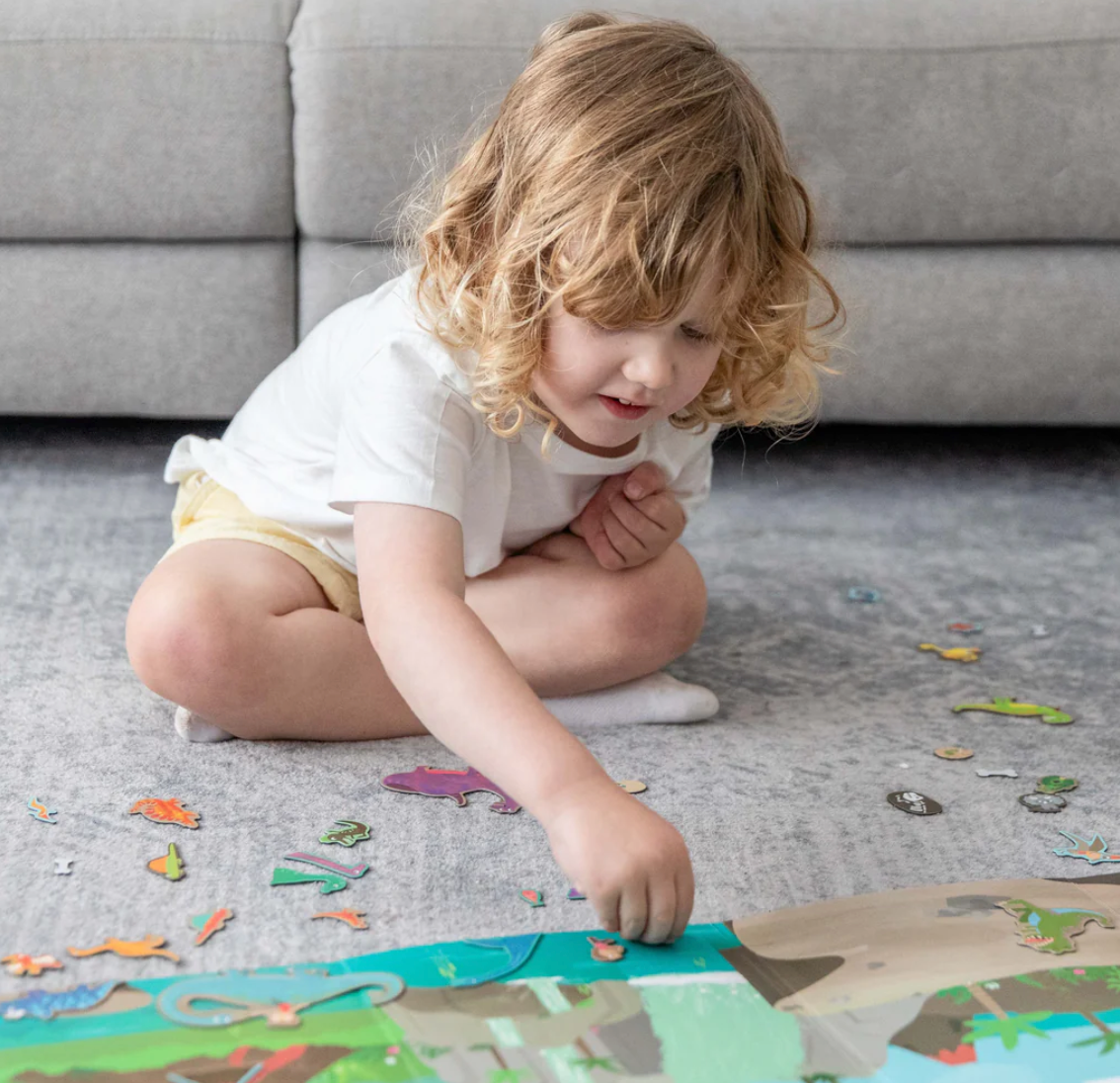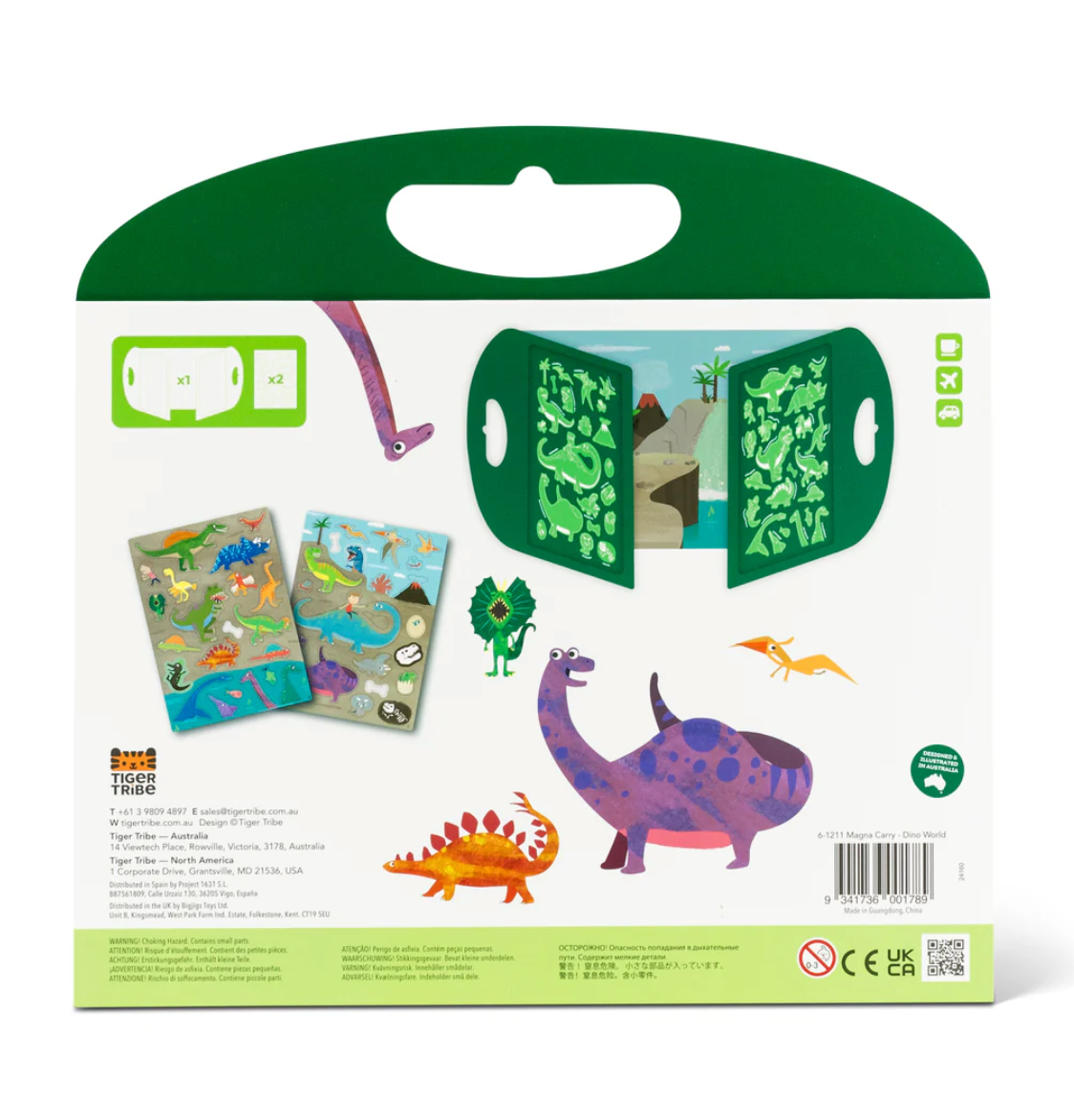 Designed and illustrated in Australia by the Tiger Tribe team - Magna Carry - Dino World helps develop imagination and fine motor skills, all the while encouraging independent play. Each set comes with 2 sheets of press-out magnets and is super portable (easy to fold up and take with you).