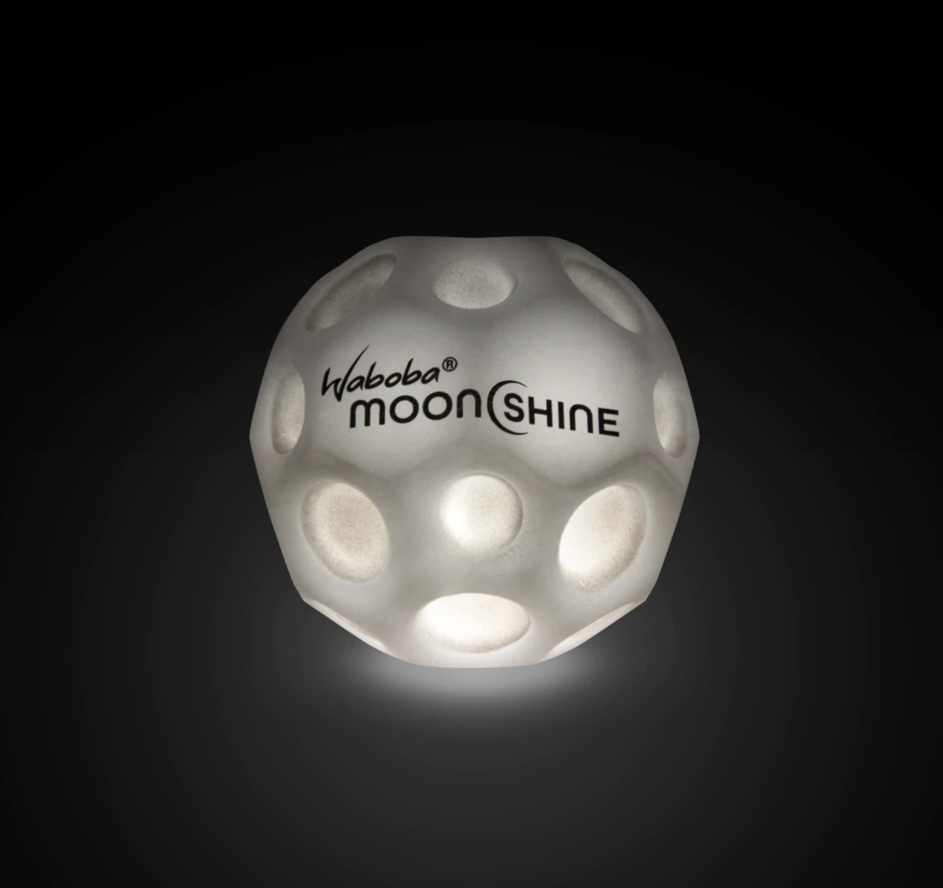 Goodnight, sunshine. Hello, Moonshine. Play in the dark, because it's a full Moon every night now with Waboba Moonshine. Our new light up Moon Ball is slightly smaller, but lightyears ahead in fun!