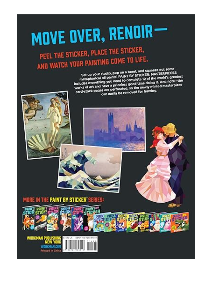Set up your studio, pop on a beret, and squeeze out some metaphorical oil paints! PAINT BY STICKER:MASTERPIECES includes everything you need to complete 12 of the world's greatest works of art and have a priceless good time doing it. And note—the card-stock pages are perforated, so the newly minted masterpiece can easily be removed for framing.