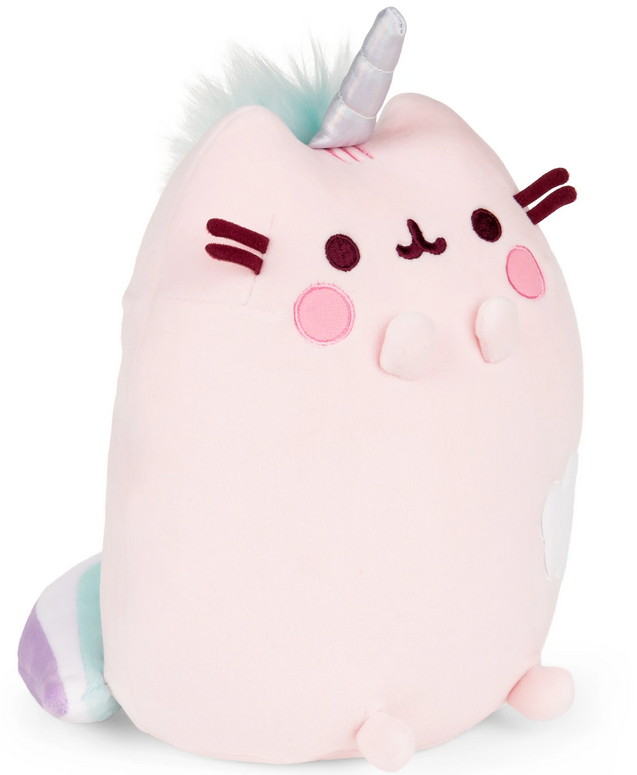 Who doesn't love Pusheen? Well now we have this Pusheenicorn to make them more magical! This Squisheen Pusheenicorn has uniquely elastic fabric that makes her extra squishy inside and super soft outside! Dreamy Pusheenicorn is a 9.5” super squishy, super huggable Squisheen! This special, extra dreamy Pusheenicorn features pink plush, rosy blushing cheeks, iridescent horn, and a special cloud embroidery. Elastic fabric provides satisfying squish and her sitting pose makes her a perfect addition to any Pusheen collection.