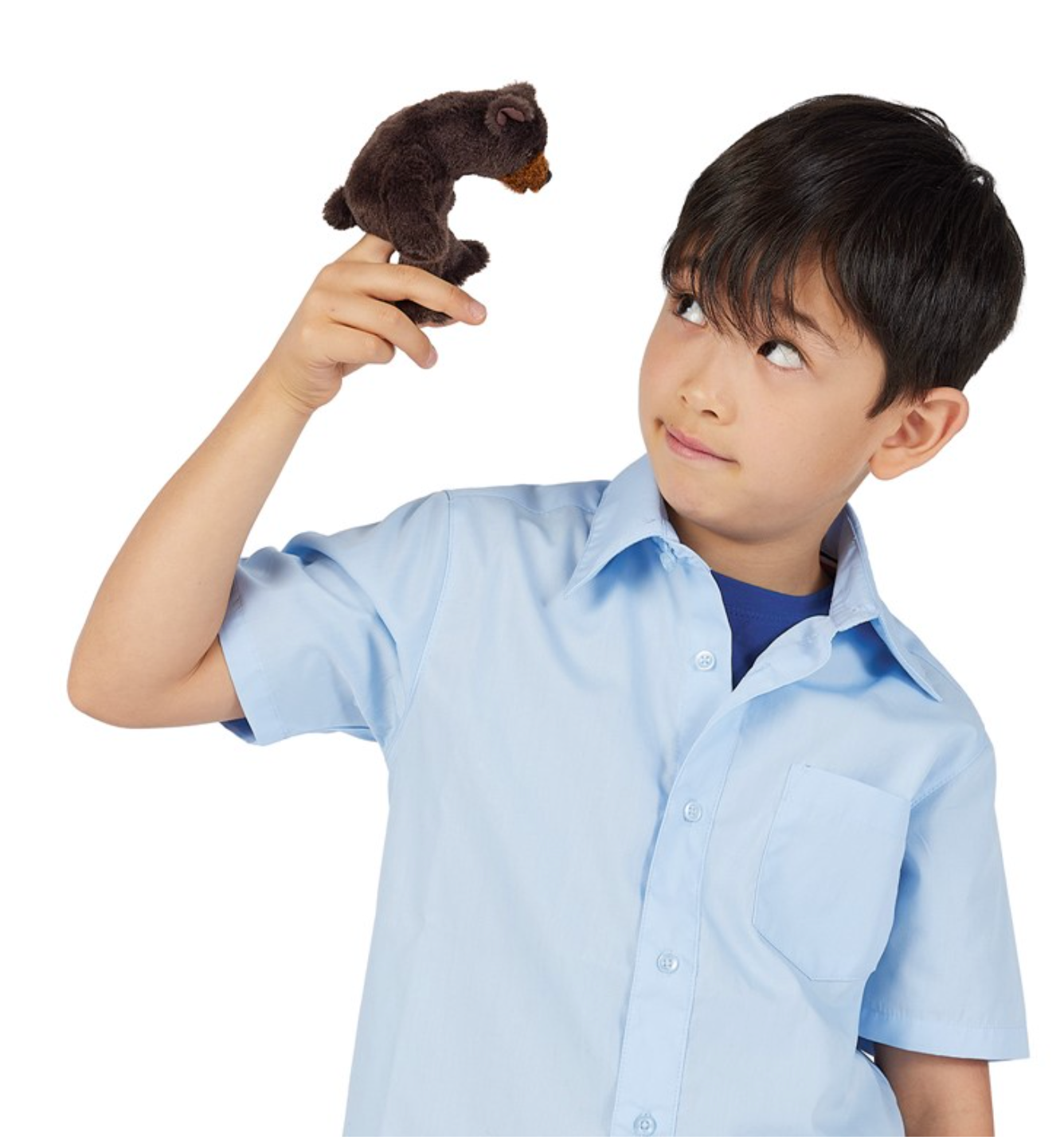 The Mini Sitting Bear finger puppet provides anytime comfort with a palmful of beary delightful, on-the-go fun! 5" tall.