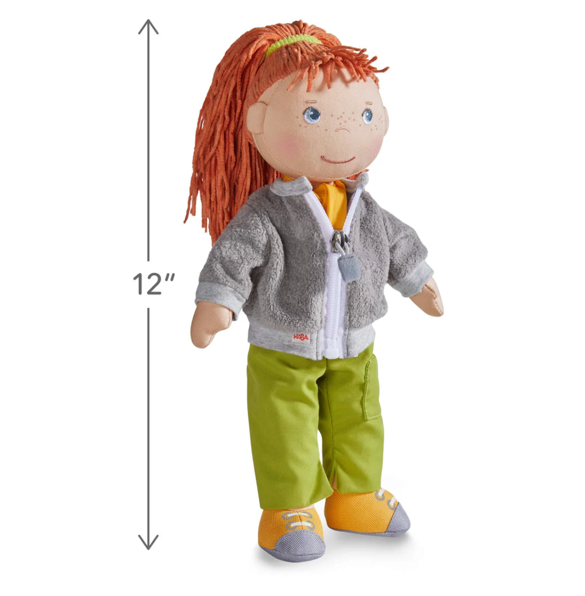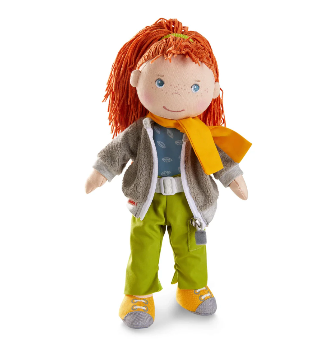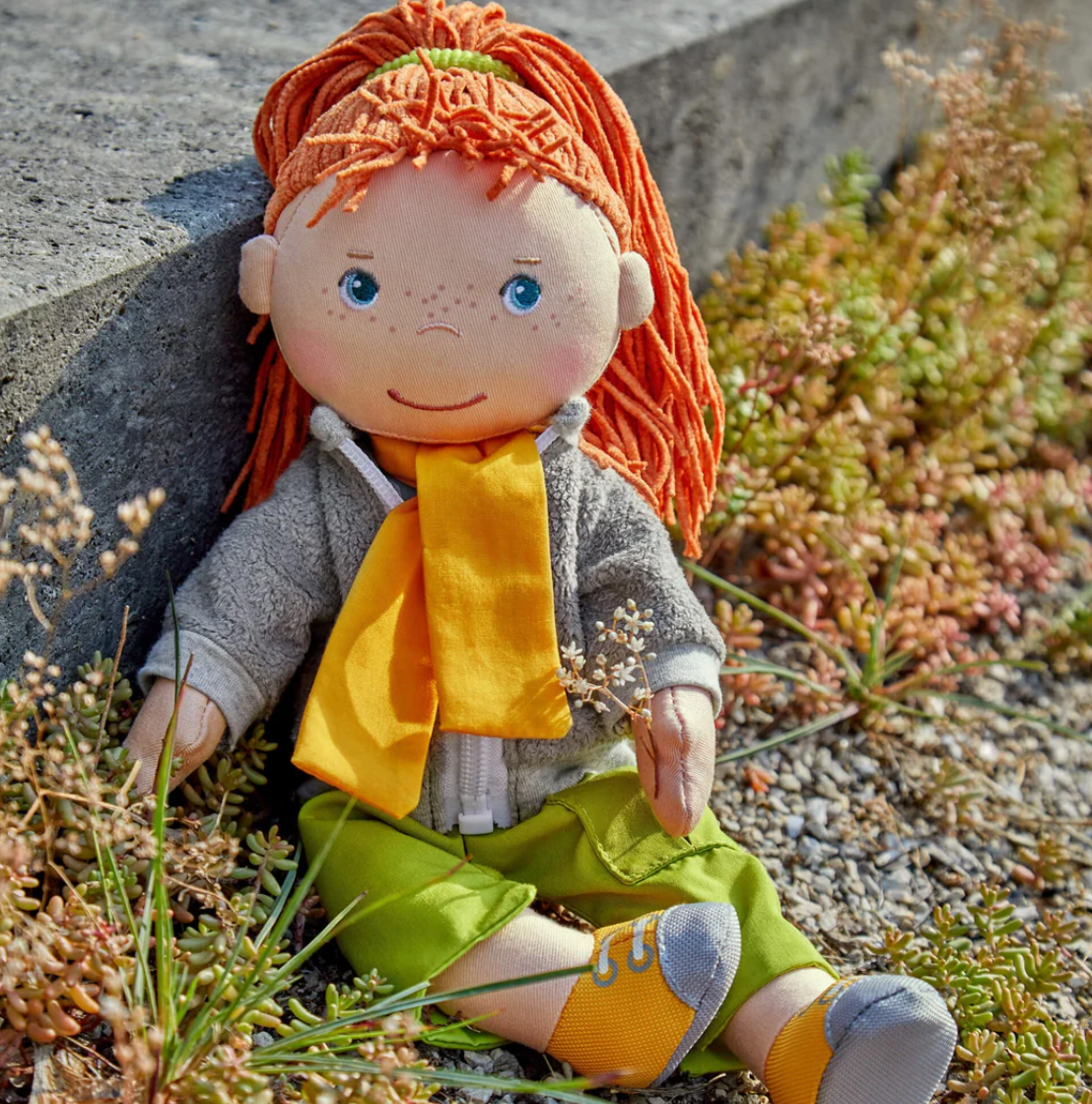 Whatever the adventure of the day, our doll Soley will be ready! This adventurous friend is all dressed up for the outdoors with her sporty hiking shoes, cozy fleece jacket, and bright scarf. It doesn't matter whether it's a soccer field or climbing in the mountains, Soley wants to get out and experience something exciting. A great friend that will always be by a child's side ready for cuddles.