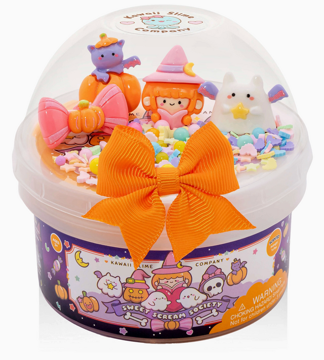 Double the textures, double the fun—our Sweet Scream Society 2 Slimes in 1 is here to make your Halloween playtime extra magical! This magical mash-up blends bouncy, squishy jelly slime with light and pillowy meringue slime, creating a totally unique, ultra-satisfying texture once swirled together. Scented with the decadent aroma of midnight toffee, it’s as tempting as it is mesmerizing. Adorned with the cutest Halloween charms—like a pumpkin kitty, pastel witch, ghostly star, and a candy bow—plus a rainbow of spooky sprinkle mix, this slime is a treat for both the eyes and hands.