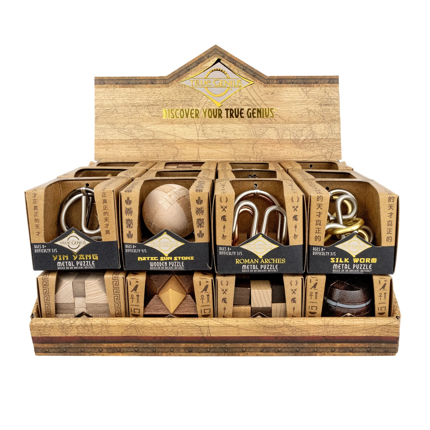 Unleash your inner mastermind with True Genius, the mini puzzle collection designed to tease and stretch your brain! These charming wooden and metal brainteasers come in a variety of difficulty levels, offering a fun challenge for everyone—from curious beginners to seasoned puzzle pros. Perfect for a quick break or to spark creative thinking, each compact puzzle is a delightful way to sharpen problem-solving skills while enjoying a playful challenge anytime, anywhere. Get ready to solve, twist, and think your way to genius!