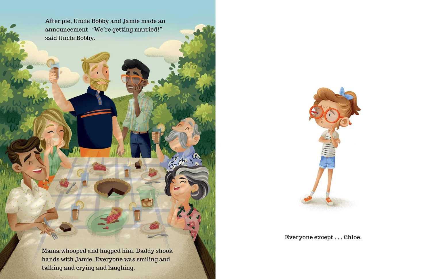 When Chloe's favorite uncle announces that he's getting married, everyone is excited. Everyone except Chloe, that is. What if Uncle Bobby no longer has time for picnics, swimming, or flying kites? Chloe just wants to keep having fun with her favorite uncle, but she's afraid everything is going to change. Can Uncle Bobby and his boyfriend Jamie show Chloe that, when it comes to family, the more the merrier? In this inspiring, love-filled story, Chloe learns just what family means.