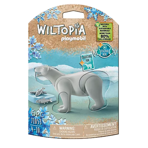 With Wiltopia - PLAYMOBIL's eco-friendly product line consisting of, on average, more than 80% sustainable materials - children can embark on adventures to vibrant regions around the world, encouraging an appreciation for the wildlife that lives there and our planet as a whole. Play with this set on its own or combine it with the rest of the Wiltopia theme (sold separately) for even more wild, animal fun! Set includes one polar bear, three fish, accessories, and corresponding animal card to unlock digital content.