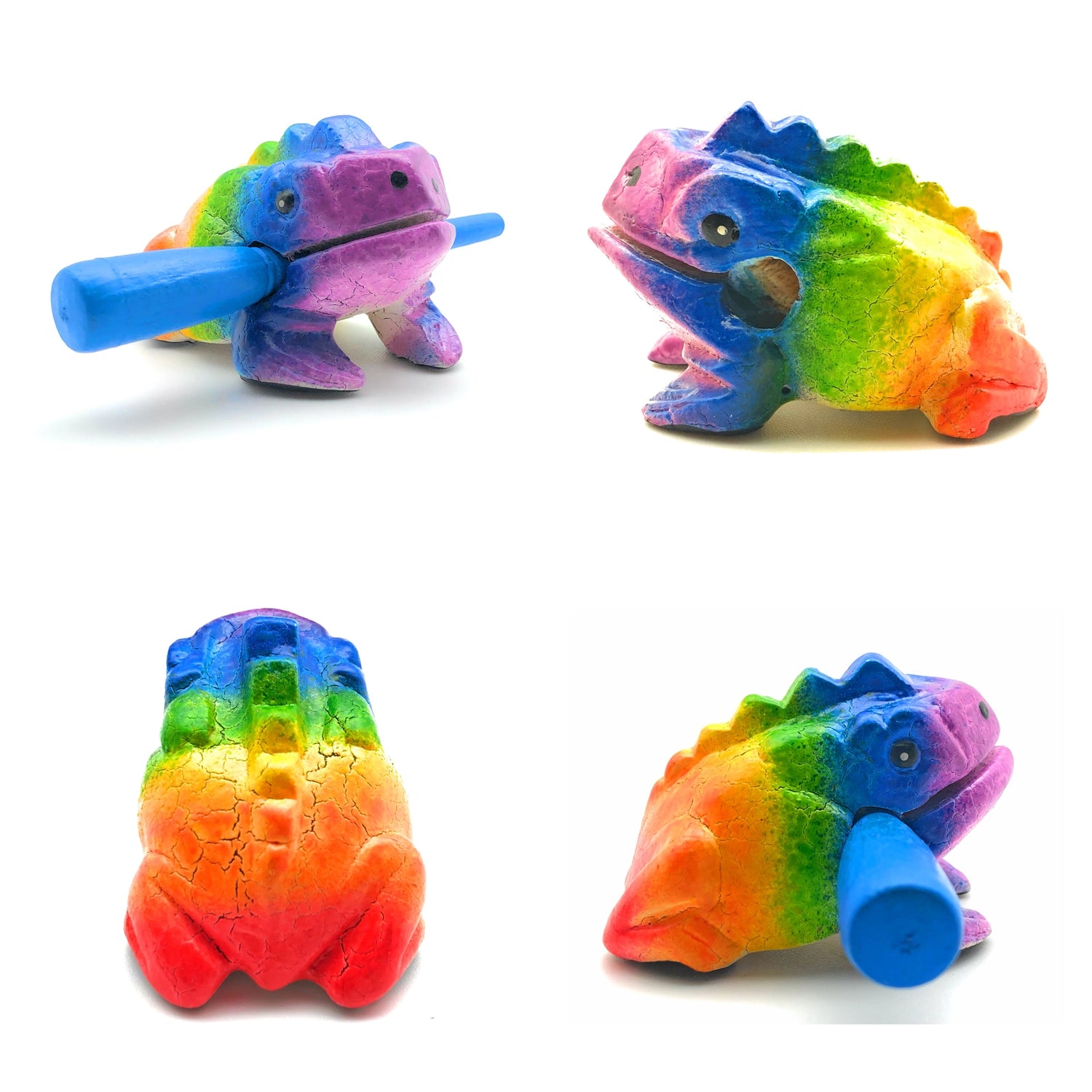 A great musical instrument percussion toy that “ribbbits” when you rub the included striker up its back. Dimensions: 2 x 1.5 x 1.5 in. Made in Thailand.