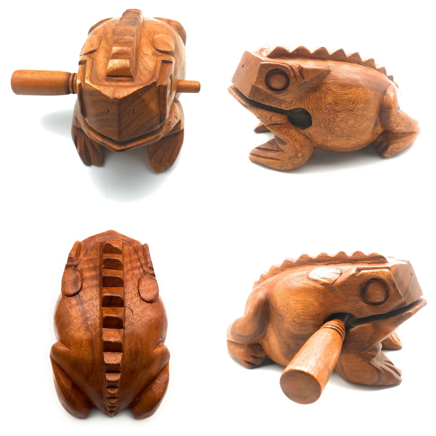 A great musical instrument percussion toy that makes a deep “ribbbit” sound when you rub the included striker up its back. Dimensions: 8.5 x 4.8 x 5 in